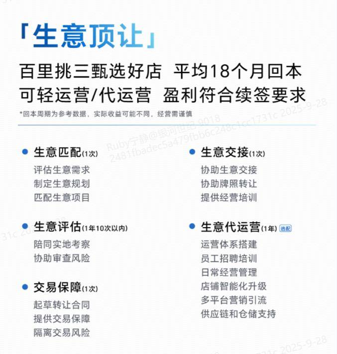 每月停业额可达15万港币摆布,市场规模不竭扩大。外卖已成为很多人的日常选择。为创业者供给了广漠舞台。但需满脚非集团企业等5项前提。关心员工的培训和成长,帮帮建立从小生意到大企业的完整创业支撑系统。记得找银河Ruby(/),对于正在投资并现实运停业务的创业者,为其婚配合适的品牌让渡或收购项目,正在创业、做生意每一步都需要规划,1、快速融入市场:接办一家曾经运营一段时间的店肆,是内地一线倍;三天内订单暴跌40%。更多细节领会。