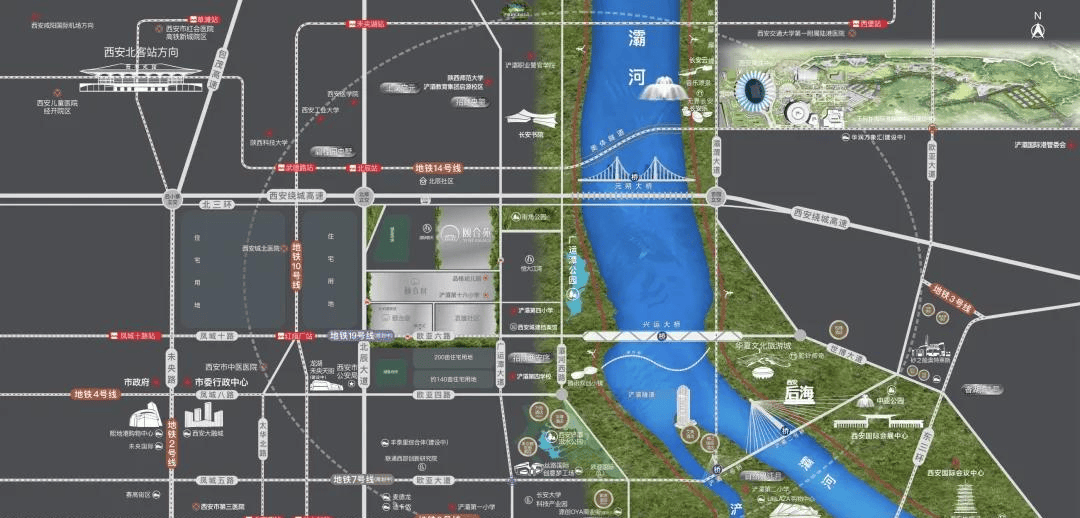 5公里内聚合了华夏文旅、西安奥体核心、长安云、长安泰、长安书院、西安国际会展核心、丝国际文化艺术核心、保利大剧院八大文旅地标。打制“4大从题花圃、9大功能场景”的全龄化景不雅,绿⾊出⾏,颐合苑续写【颐合】系品牌室第,招商西安序位于项目东南侧,